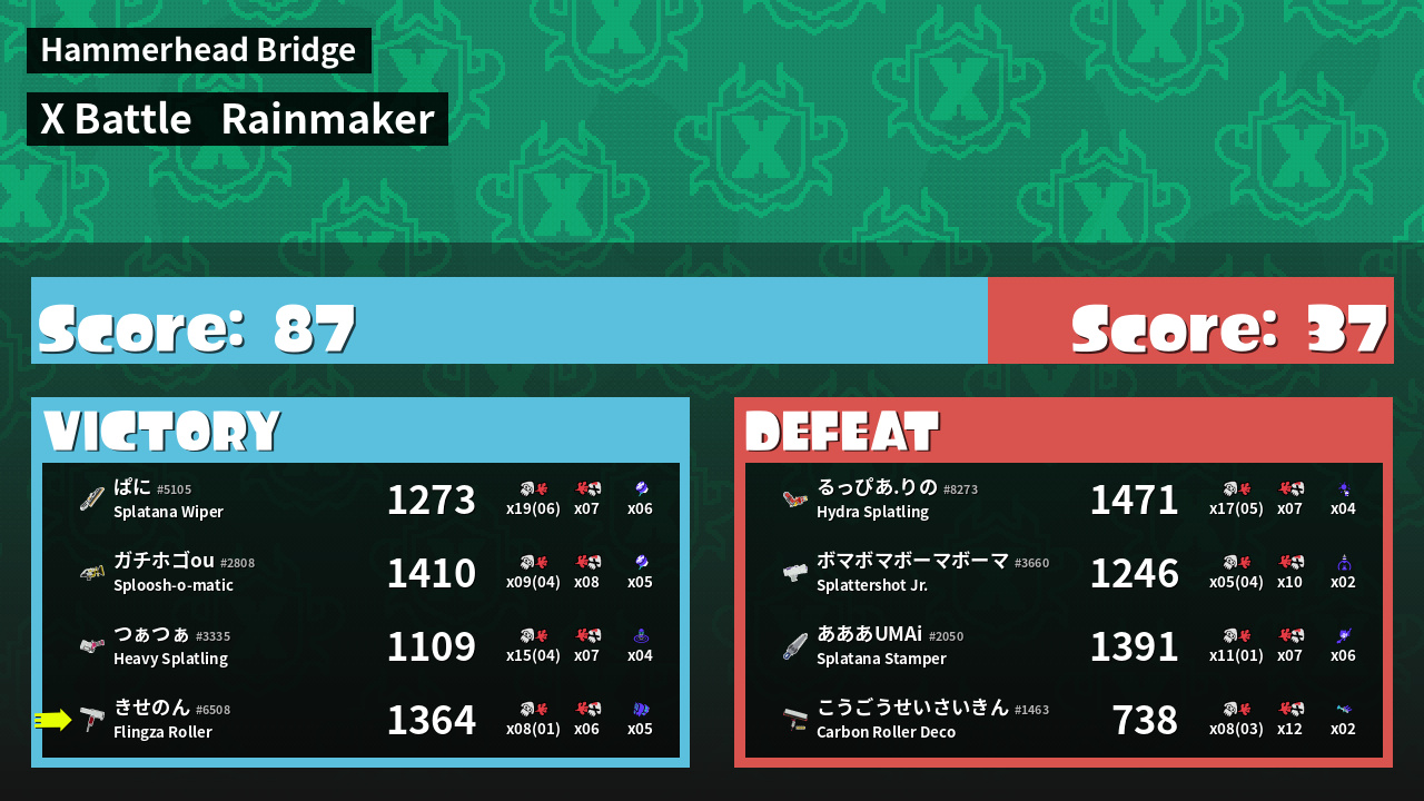 | Mode | Rainmaker - X Battle | ||