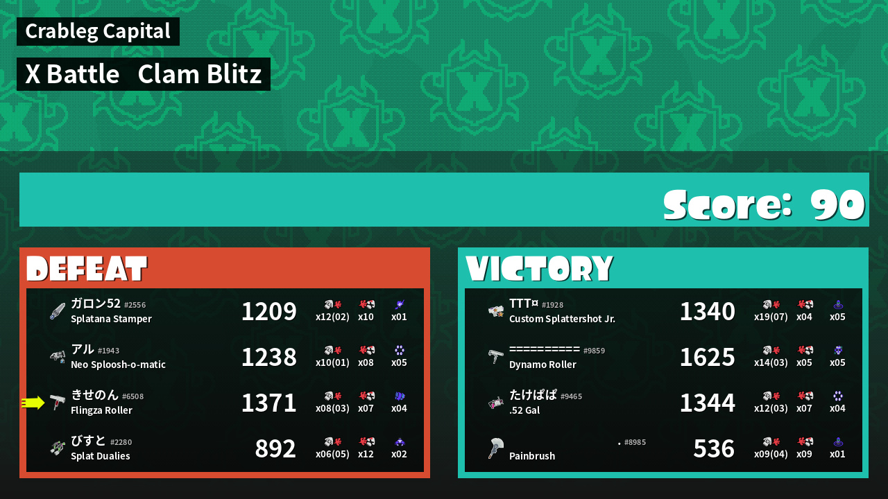 | Mode | Clam Blitz - X Battle | ||