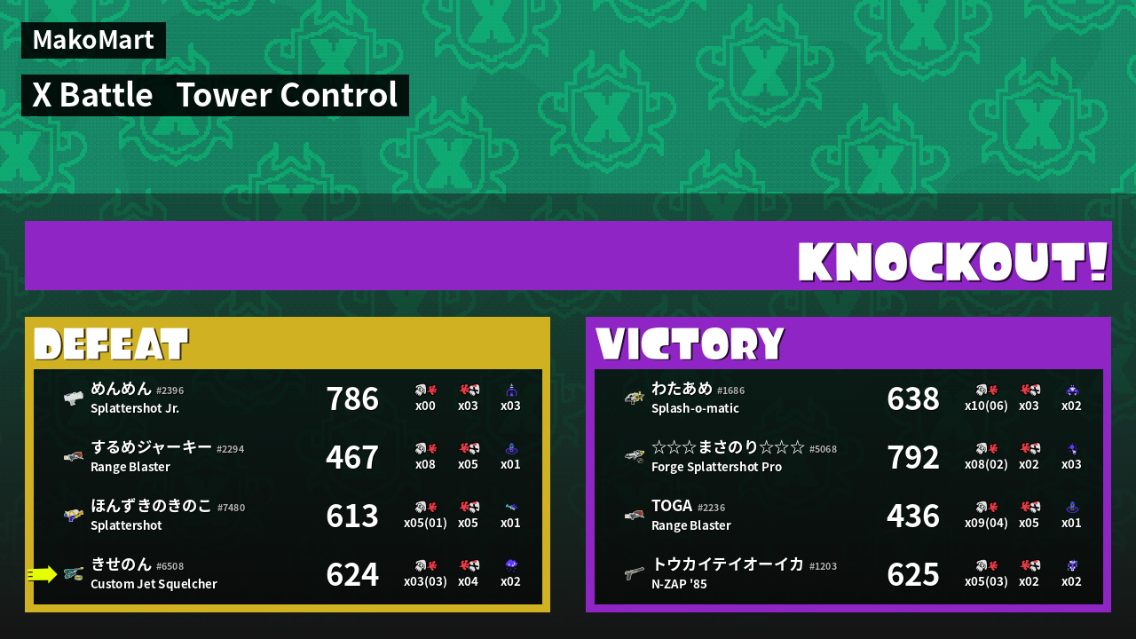 | Medals | #1 Splat Assister #1 Tower Stopper #1 Ink Storm User | ||