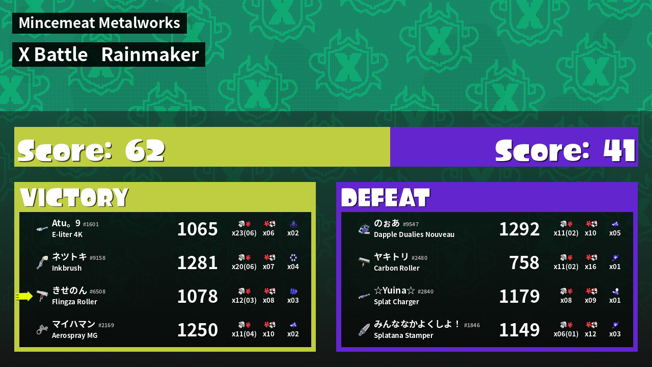| Weapon | Flingza Roller ( Ink Mine / Tenta Missiles) | ||