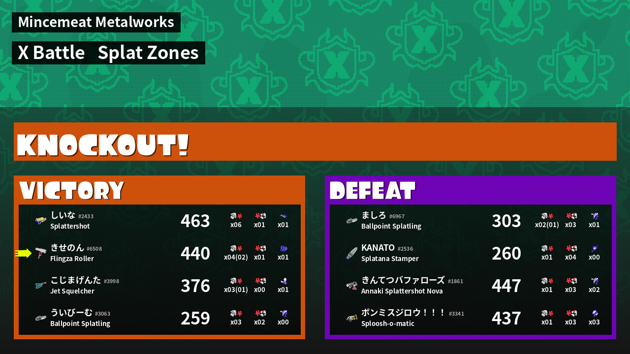| Medals | #1 Super Jump Spot #1 Splat Assister #2 Overall Splatter | ||