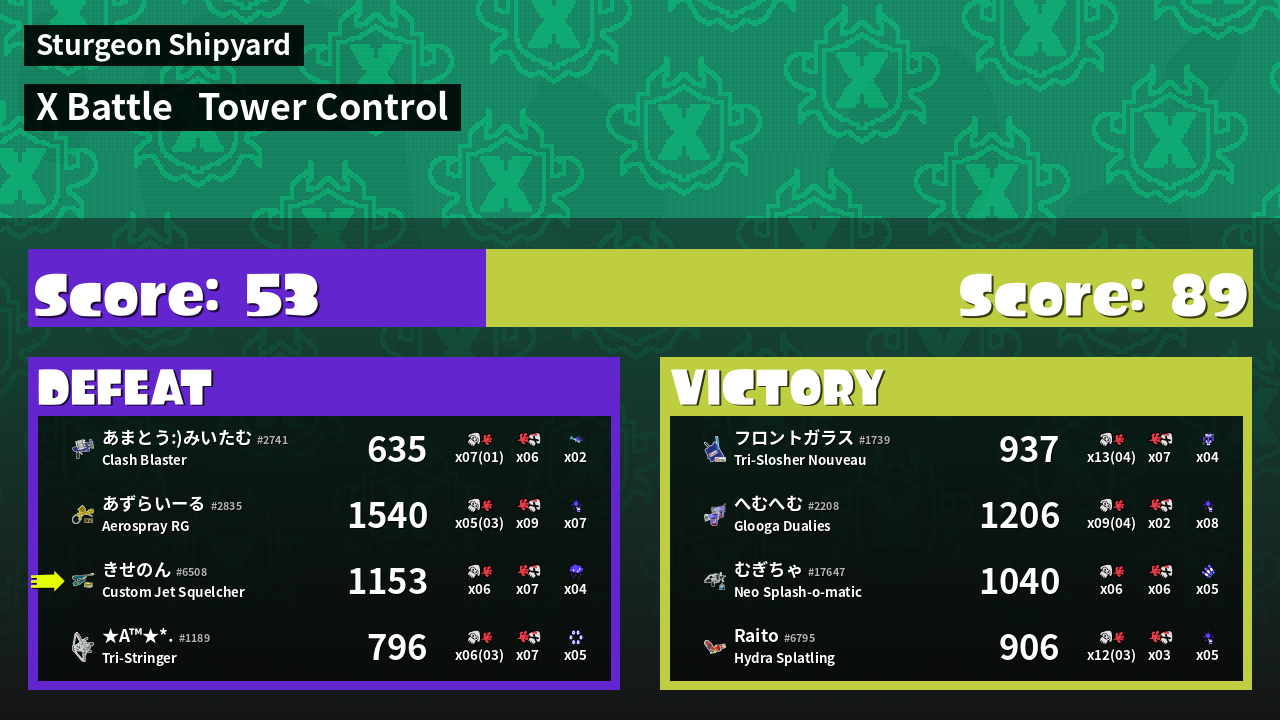 | Mode | Tower Control - X Battle | ||
