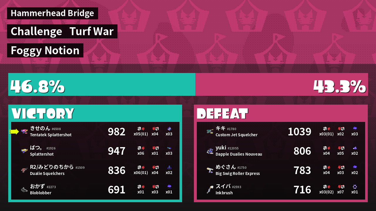 | Mode | Turf War - Challenge | ||