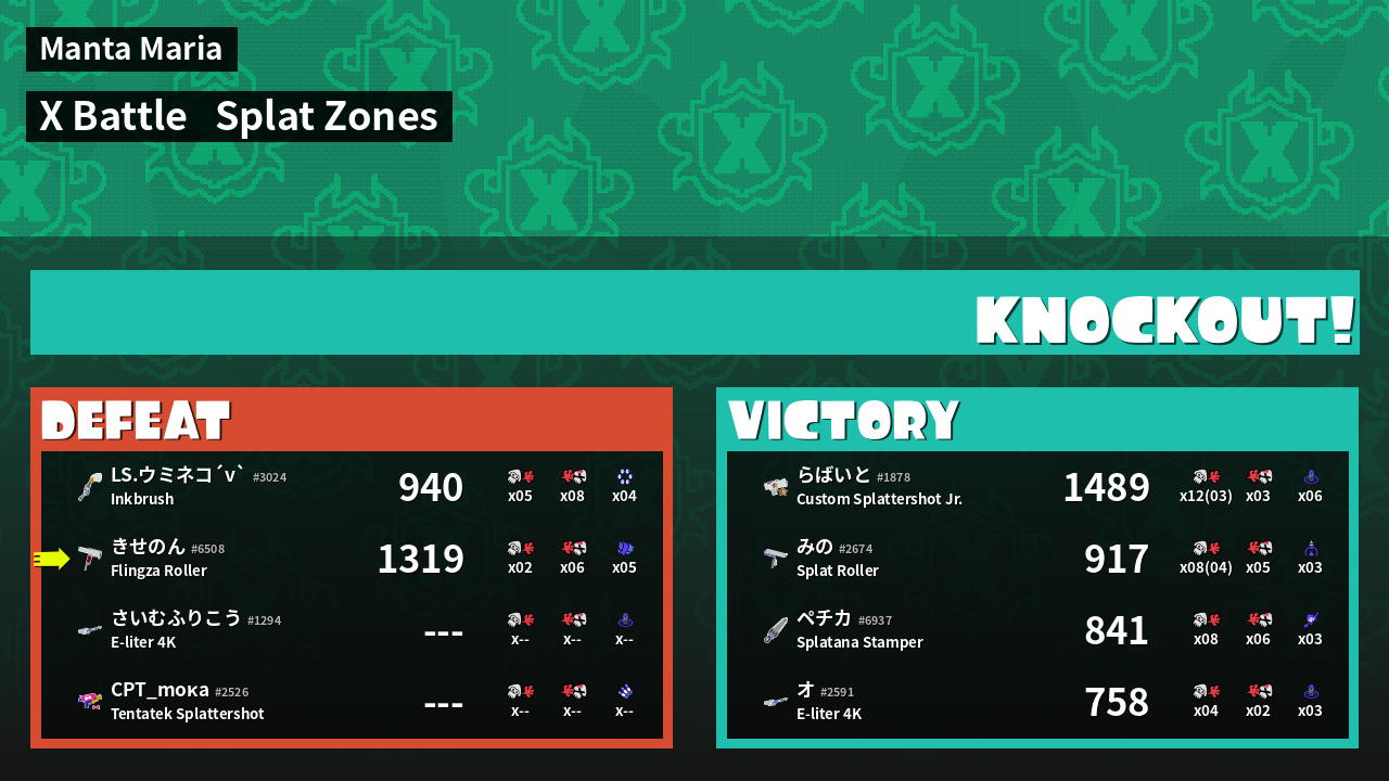 | Weapon | Flingza Roller ( Ink Mine / Tenta Missiles) | ||