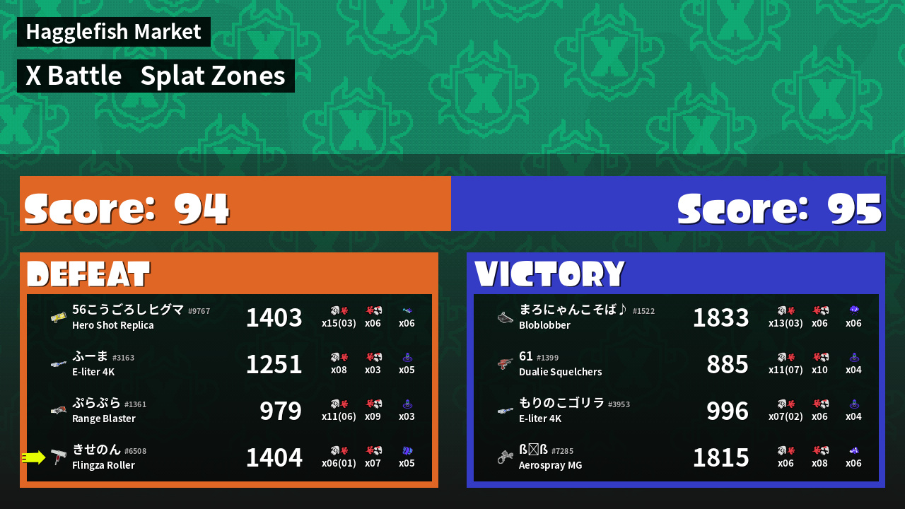 | Mode | Splat Zones - X Battle | ||