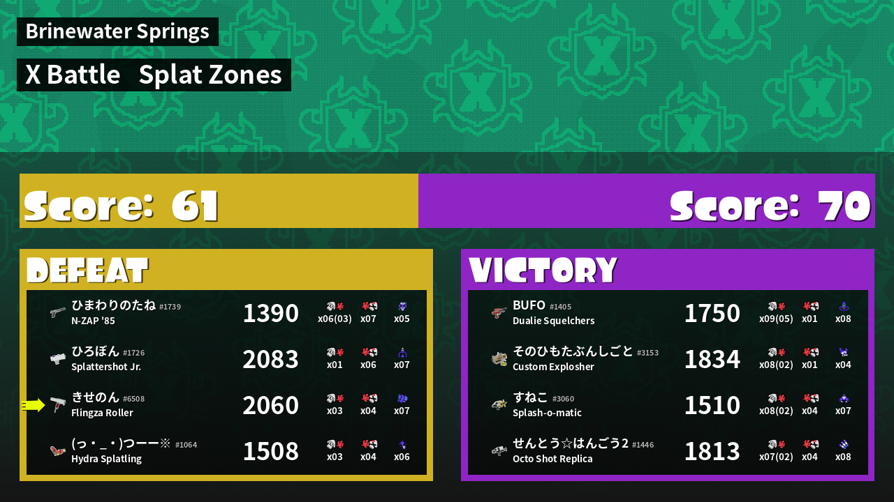 | Weapon | Flingza Roller ( Ink Mine / Tenta Missiles) | ||