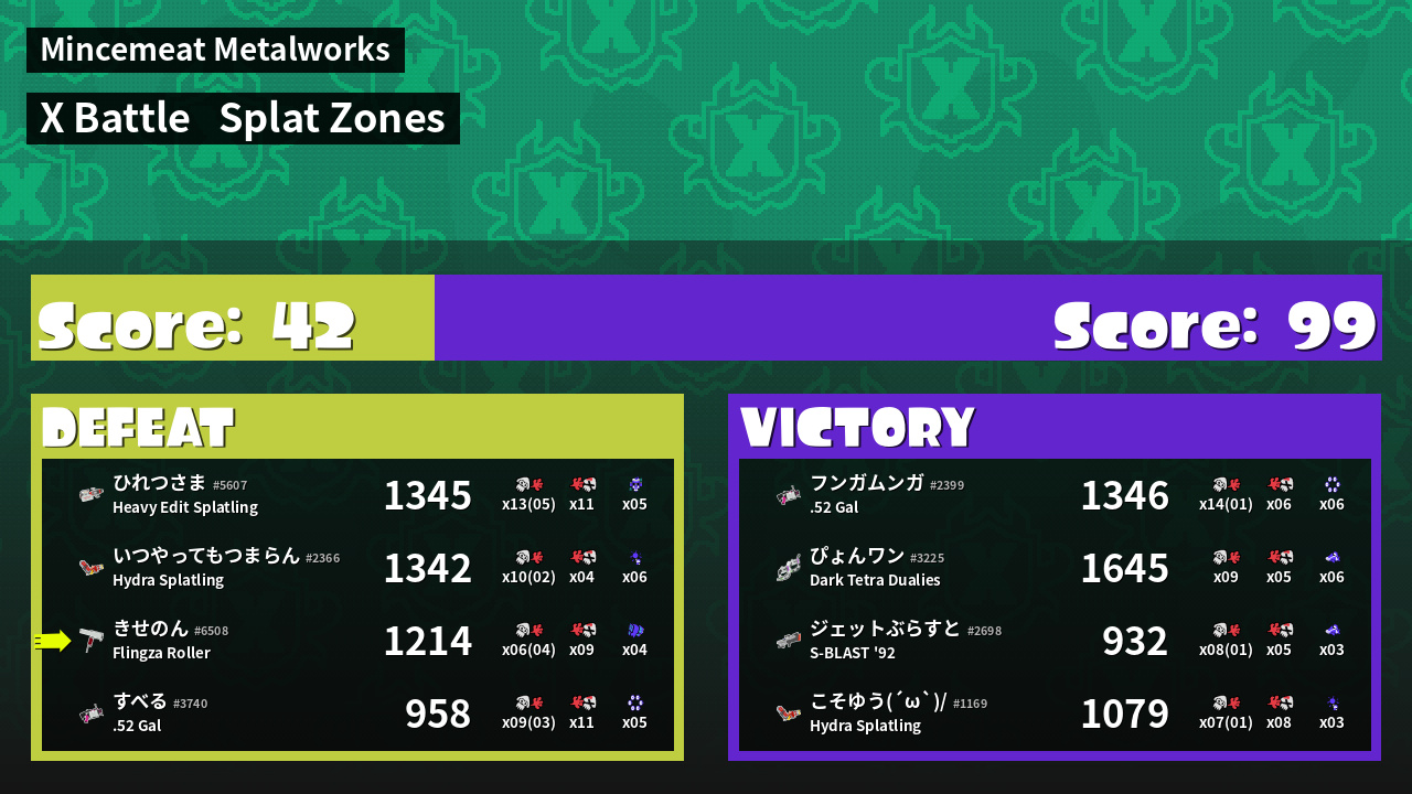 | Weapon | Flingza Roller ( Ink Mine / Tenta Missiles) | ||