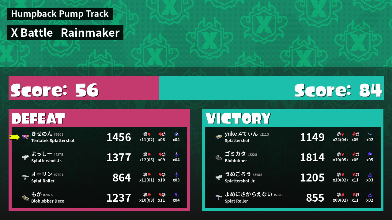 | Weapon | Tentatek Splattershot ( Splat Bomb / Triple Inkstrike) | ||