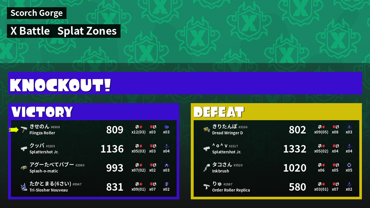 | Mode | Splat Zones - X Battle | ||