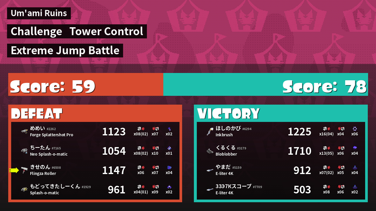 | Weapon | Flingza Roller ( Ink Mine / Tenta Missiles) | ||