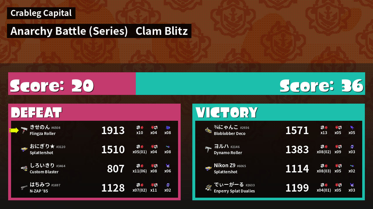 | Mode | Clam Blitz - Anarchy Battle (Series) | ||