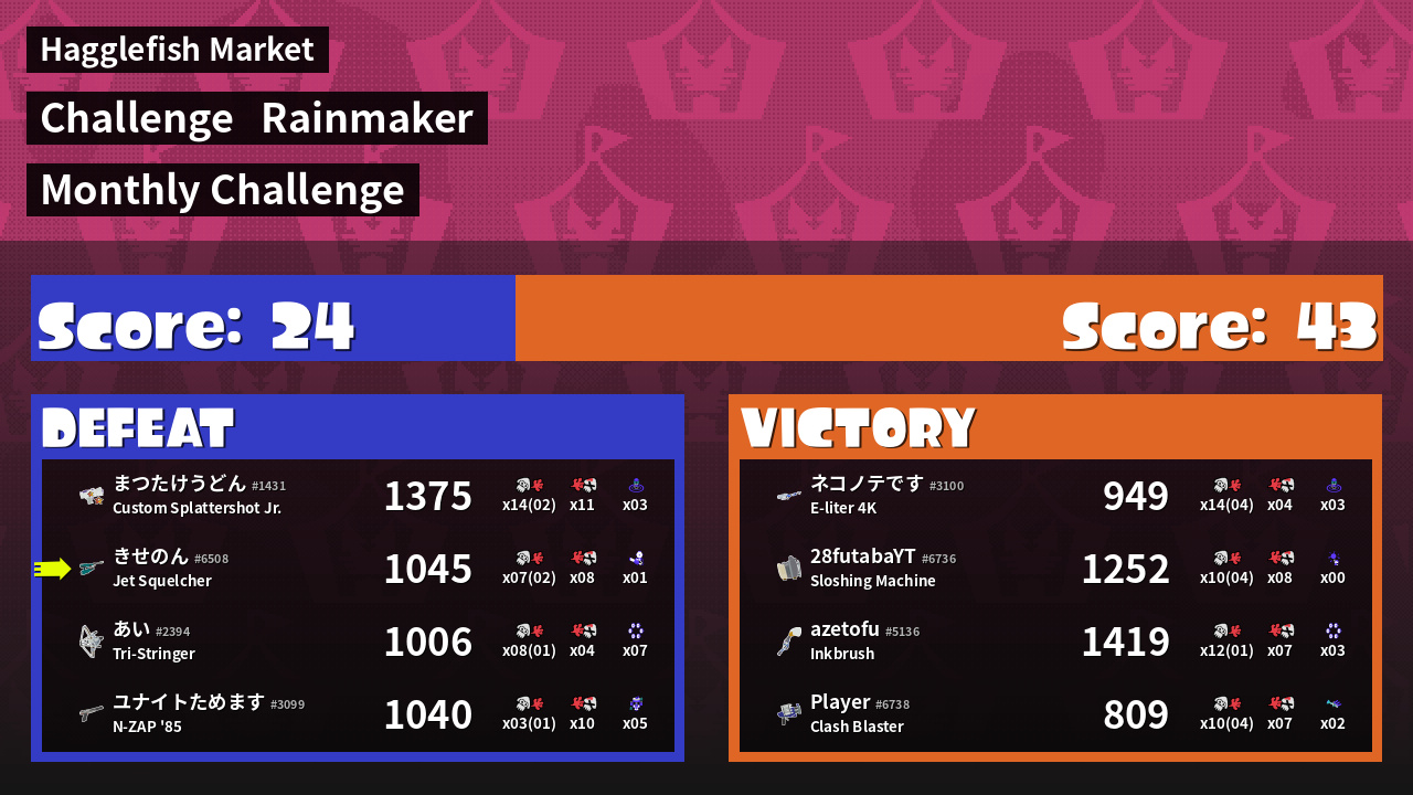 | Medals | Record-Score Setter #1 Popular Target #1 Splat Assister | ||