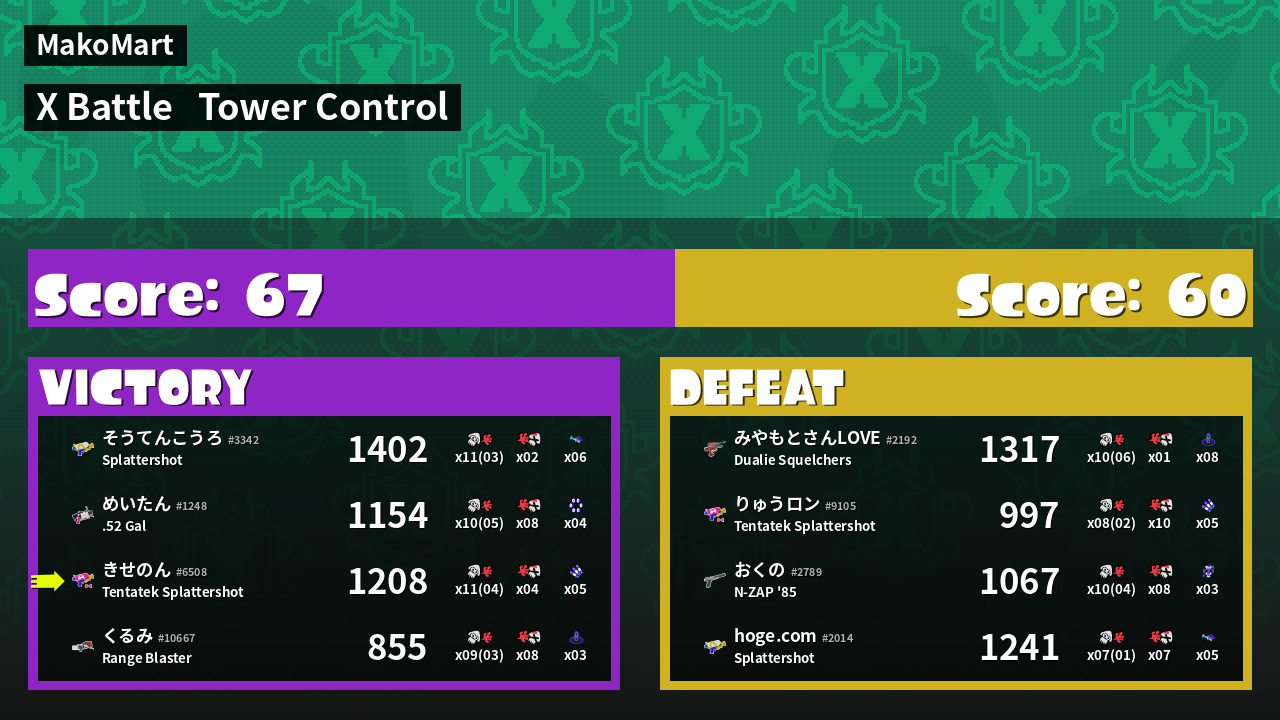 | Medals | #1 Overall Splatter #1 Checkpoint Breaker #1 Triple Inkstrike User | ||