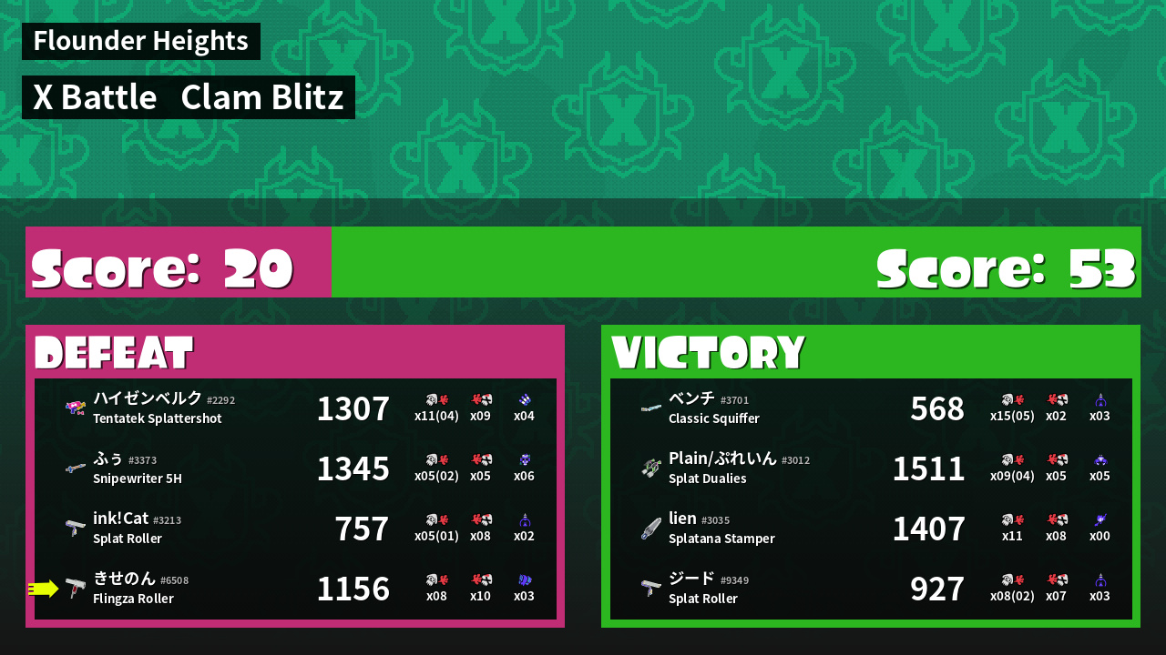 | Weapon | Flingza Roller ( Ink Mine / Tenta Missiles) | ||
