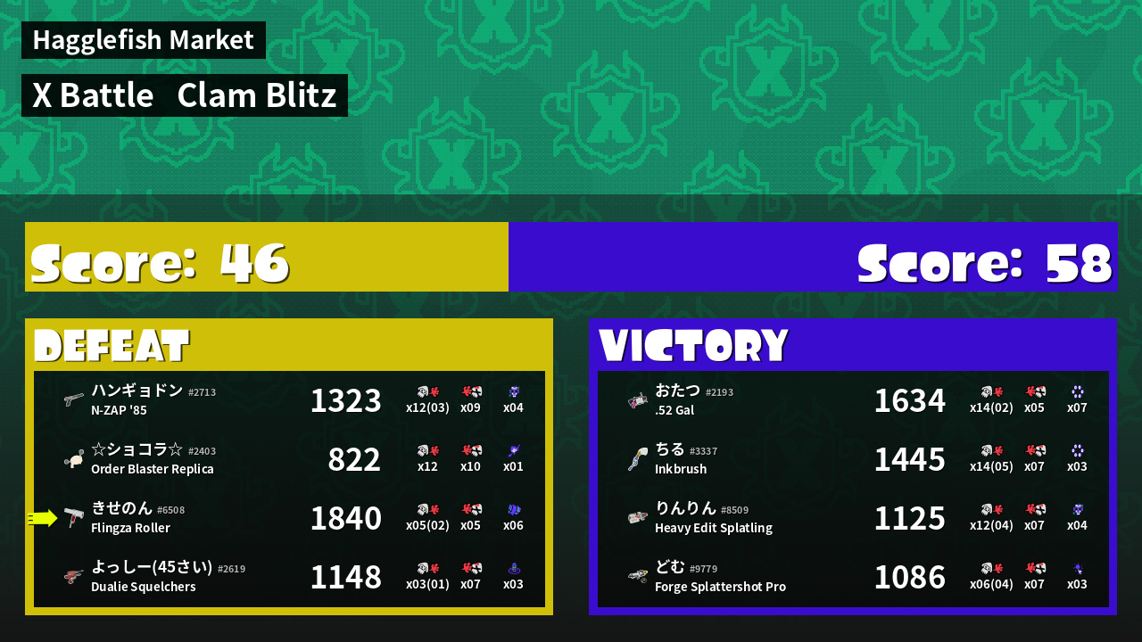 | Mode | Clam Blitz - X Battle | ||