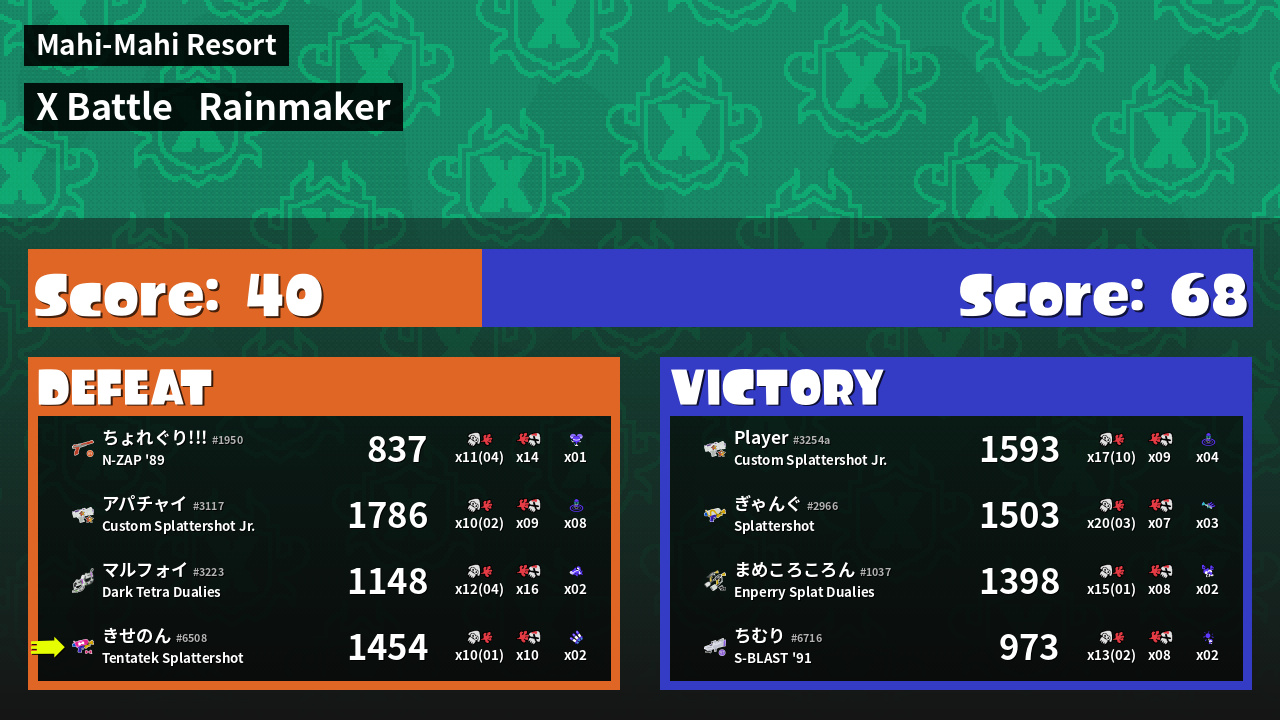 | Medals | #1 Enemy Splatter #1 Rainmaker Carrier #1 Damage Taker | ||
