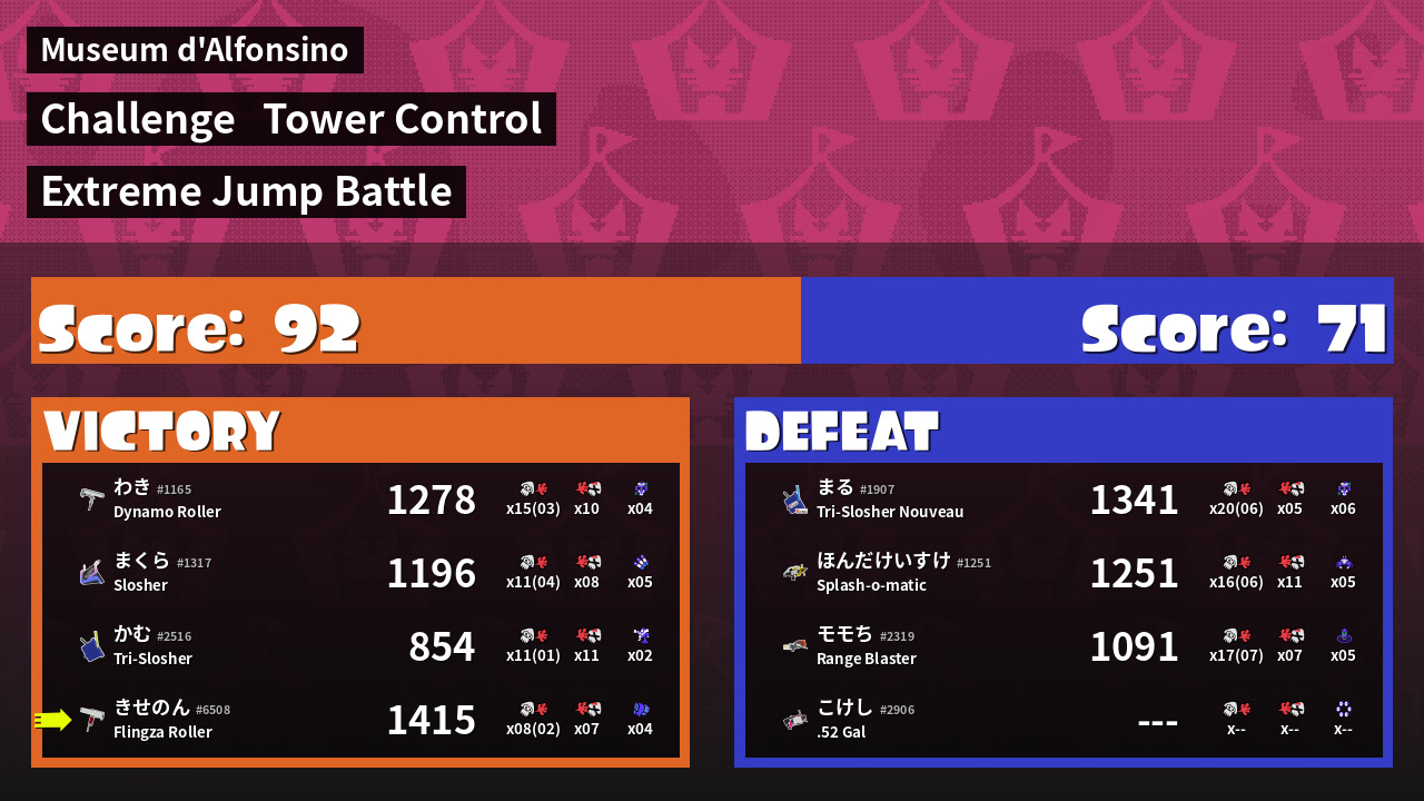 | Weapon | Flingza Roller ( Ink Mine / Tenta Missiles) | ||
