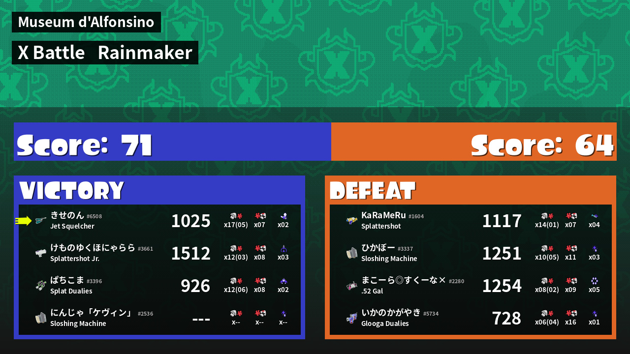 | Medals | #1 Overall Splatter #1 Popular Target #1 Super Jump Spot | ||