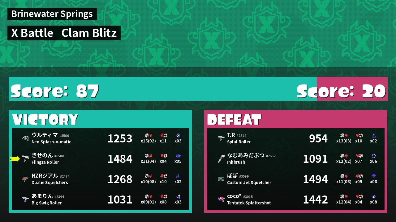 | Weapon | Flingza Roller ( Ink Mine / Tenta Missiles) | ||