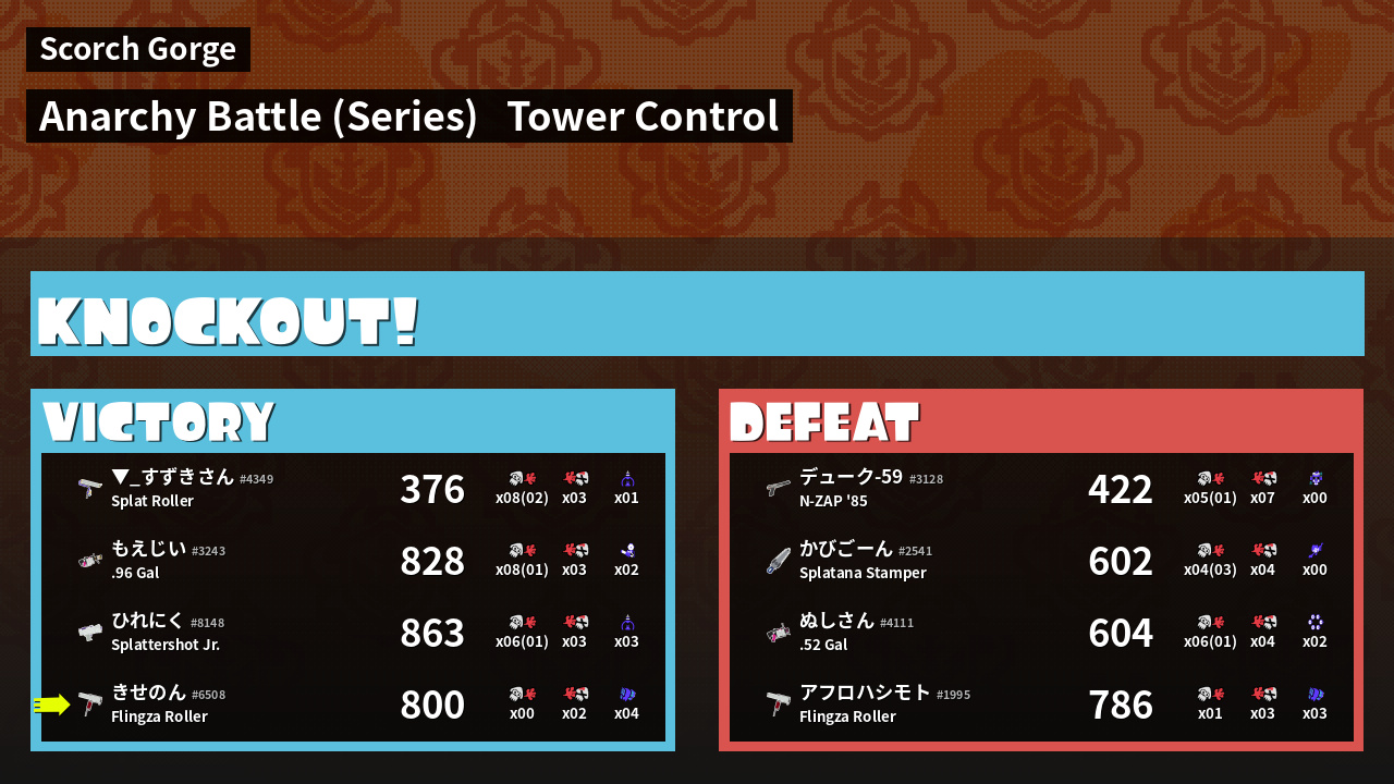 Results of きせのん's Battle