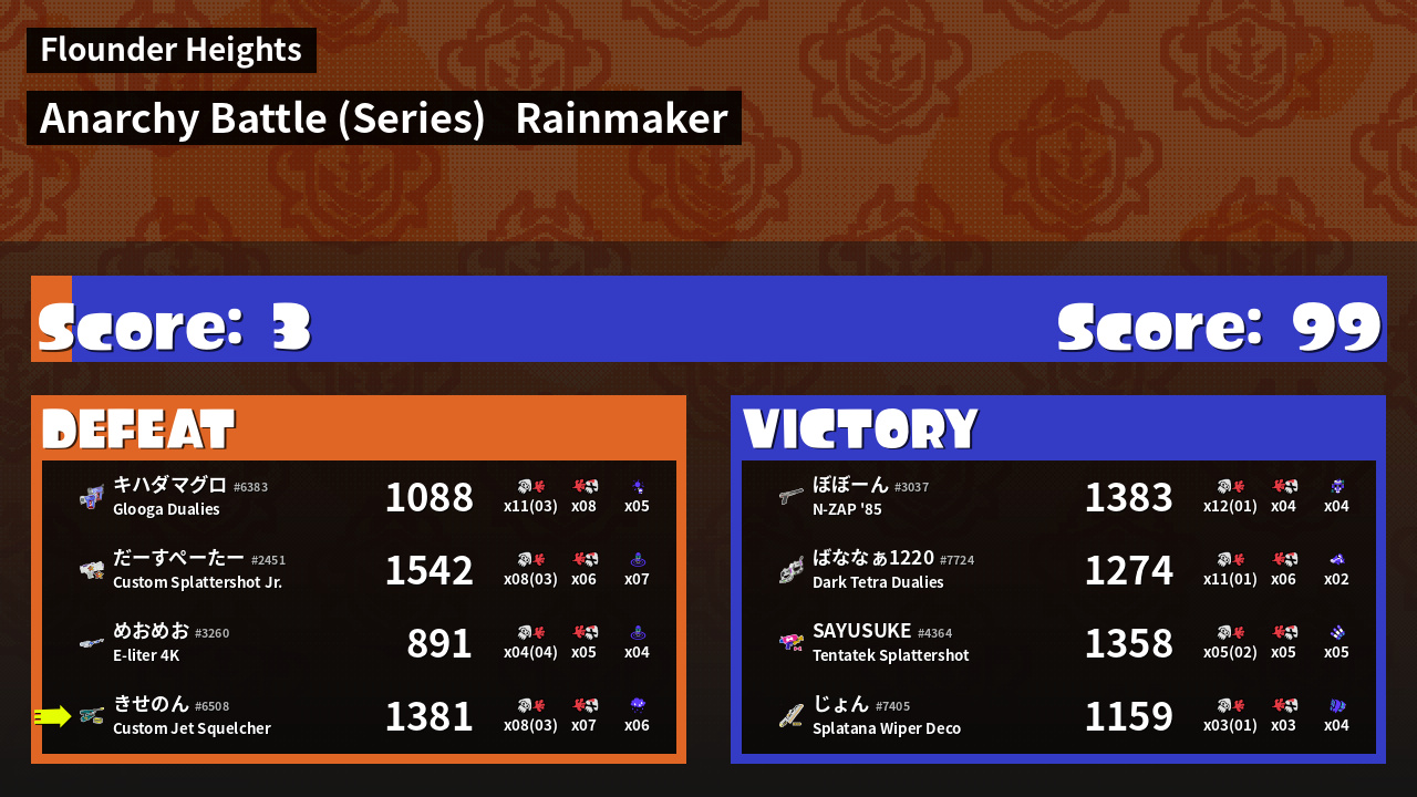 | Mode | Rainmaker - Anarchy Battle (Series) | ||