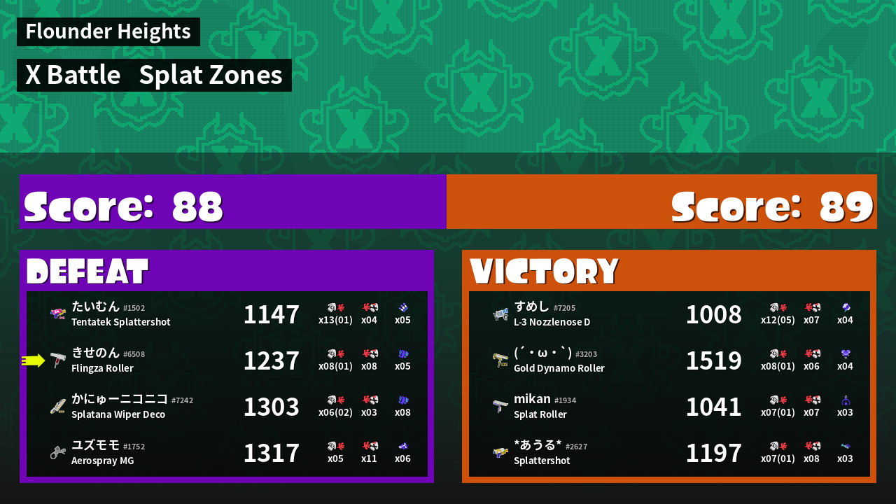 | Mode | Splat Zones - X Battle | ||