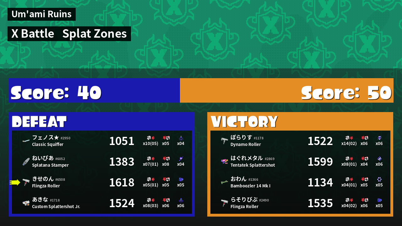 | Weapon | Flingza Roller ( Ink Mine / Tenta Missiles) | ||