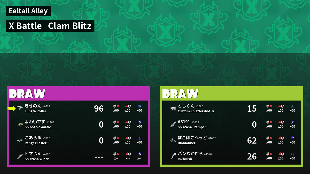 | Mode | Clam Blitz - X Battle | ||