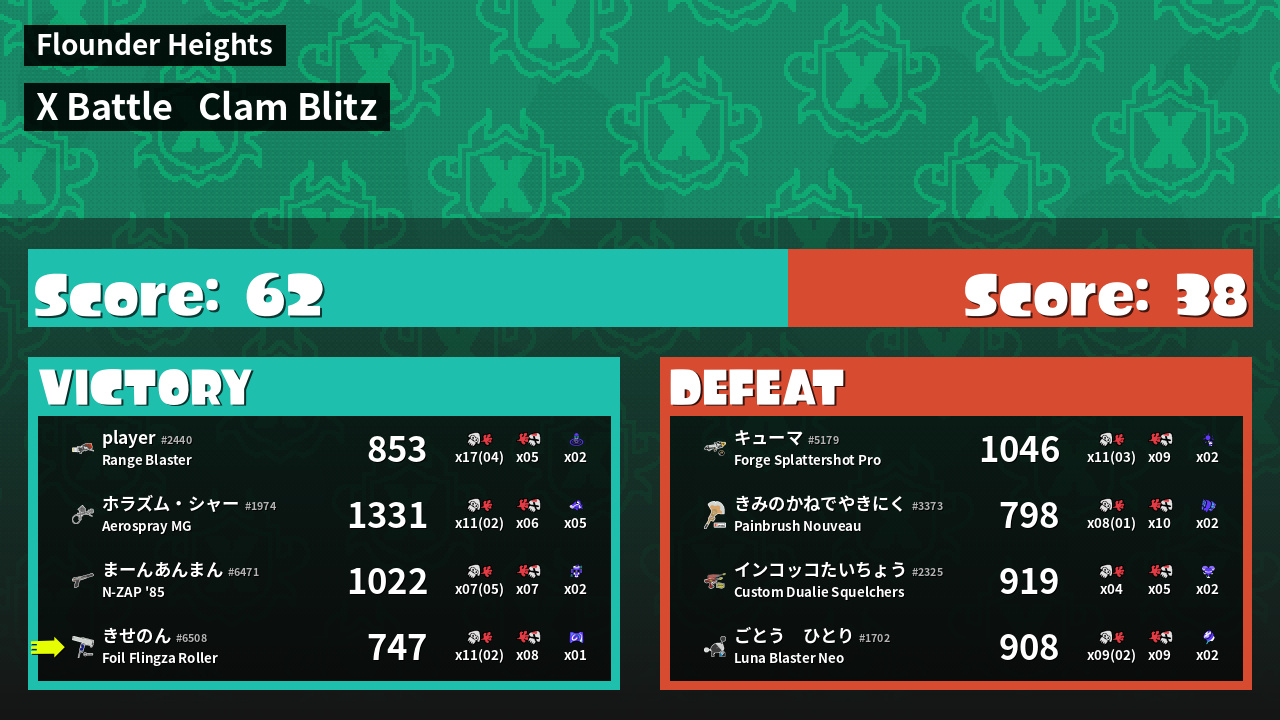 | Mode | Clam Blitz - X Battle | ||