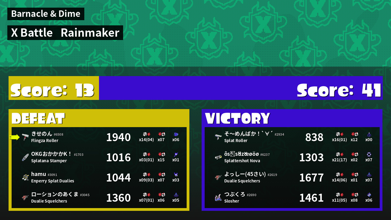 | Medals | #1 Overall Splatter #1 Turf Inker #1 Popular Target | ||