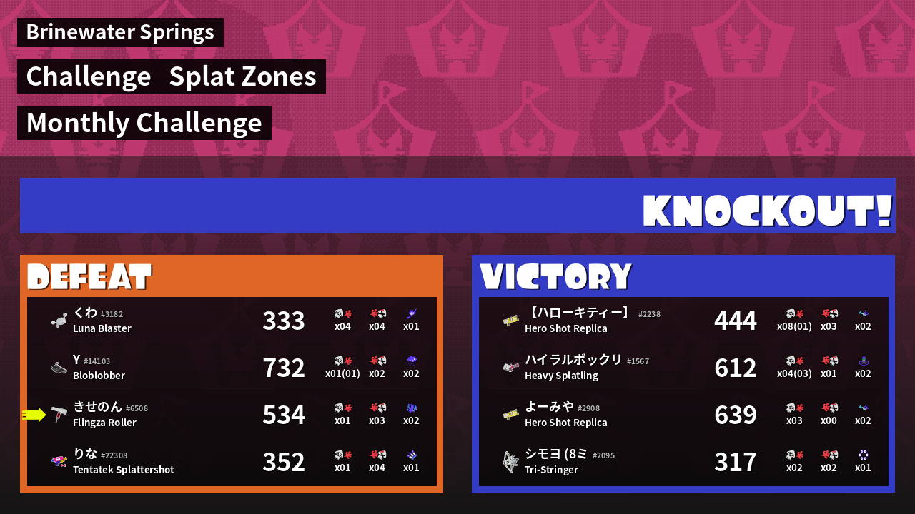 | Medals | #2 Overall Splatter #2 Splat Zone Inker #2 Turf Inker | ||