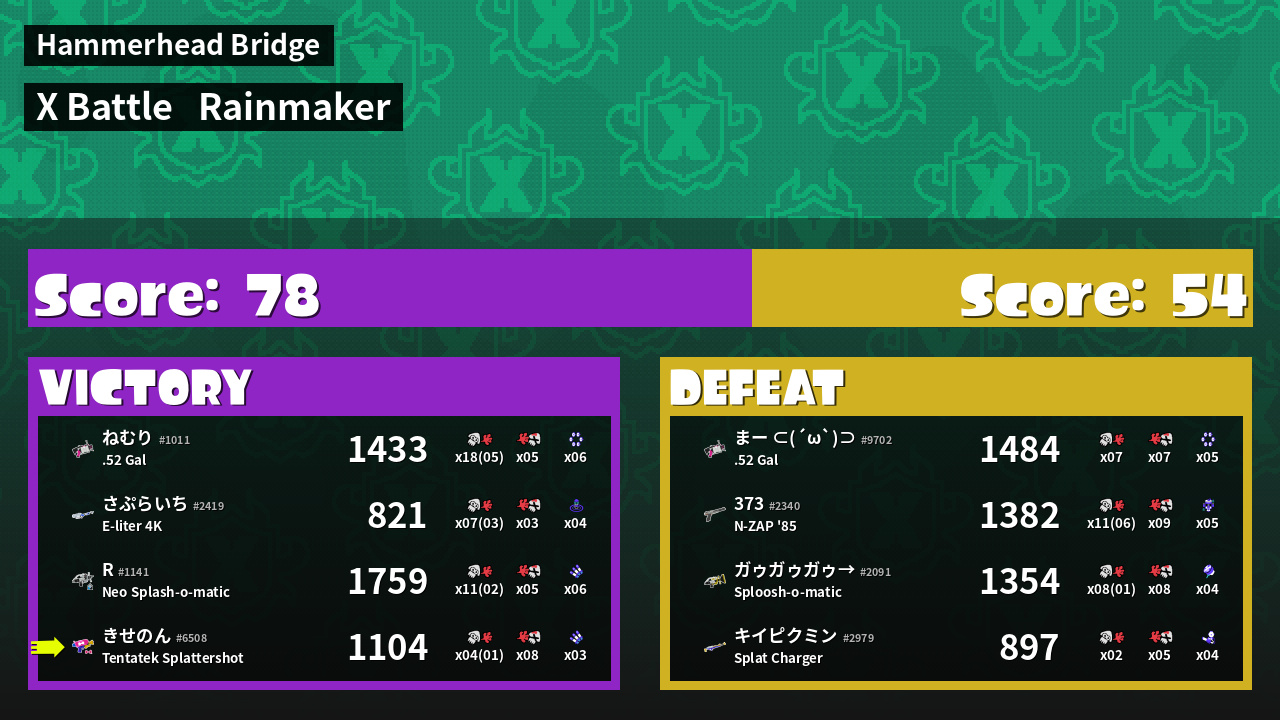 | Mode | Rainmaker - X Battle | ||