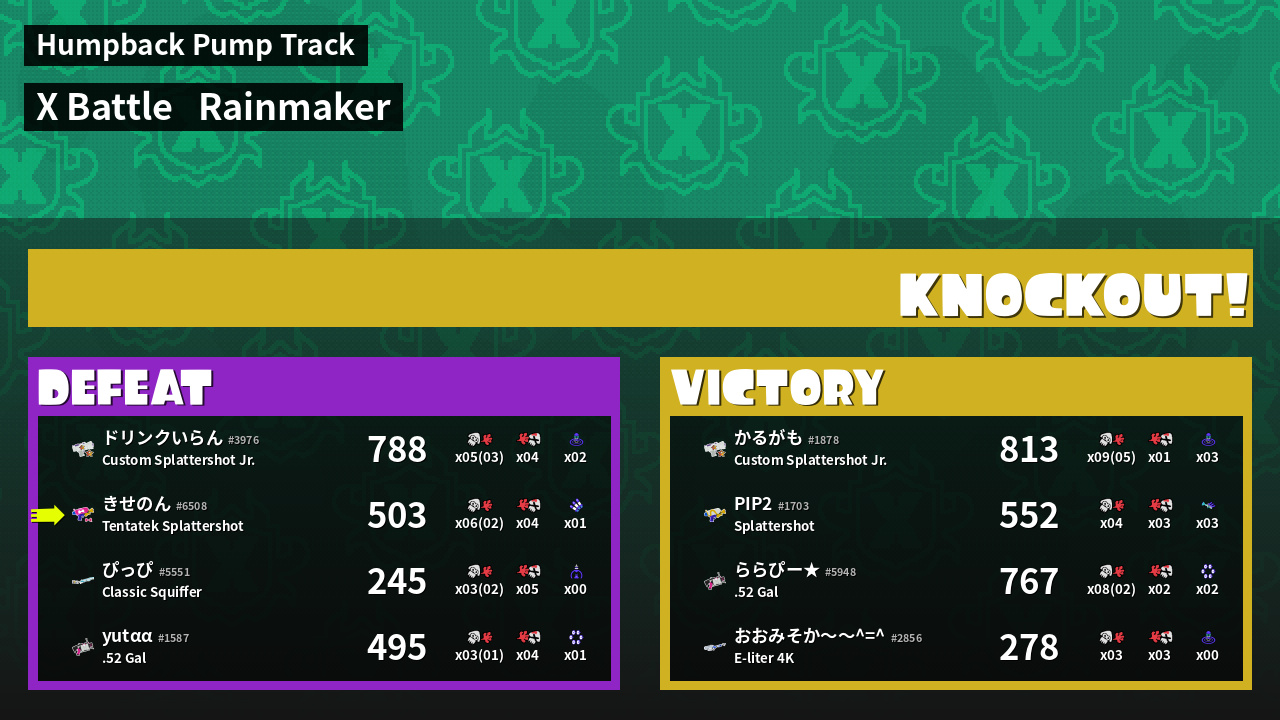 | Medals | #1 Overall Splatter #1 Enemy Splatter #1 Rainmaker Stopper | ||