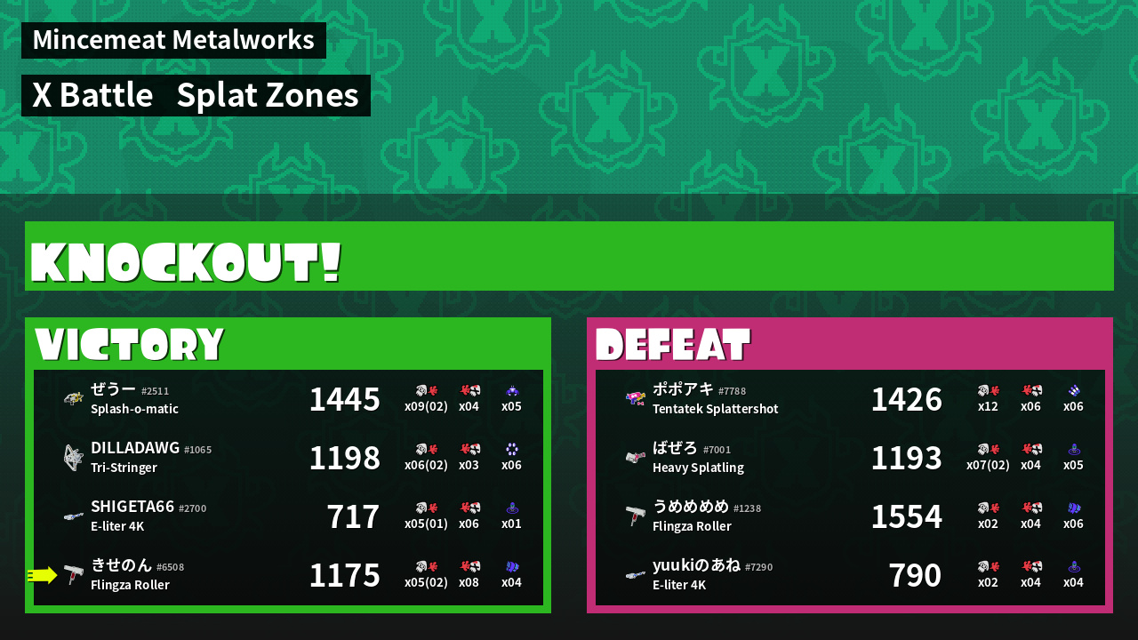 | Weapon | Flingza Roller ( Ink Mine / Tenta Missiles) | ||