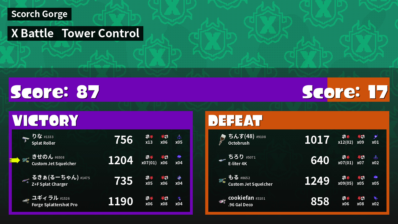 | Mode | Tower Control - X Battle | ||