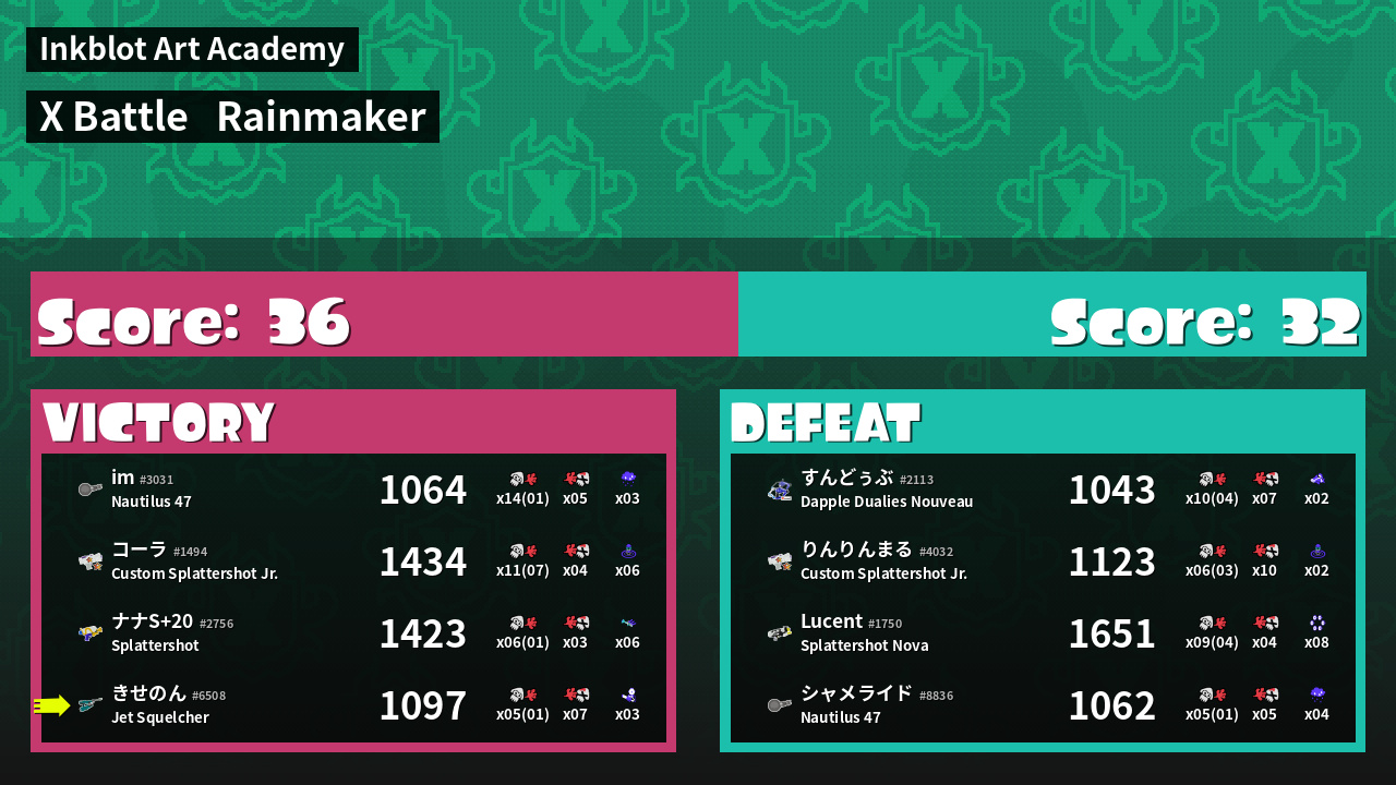 | Mode | Rainmaker - X Battle | ||