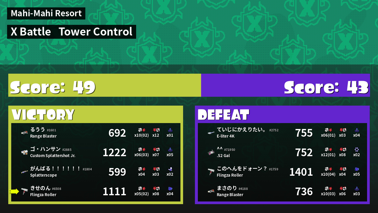 | Mode | Tower Control - X Battle | ||