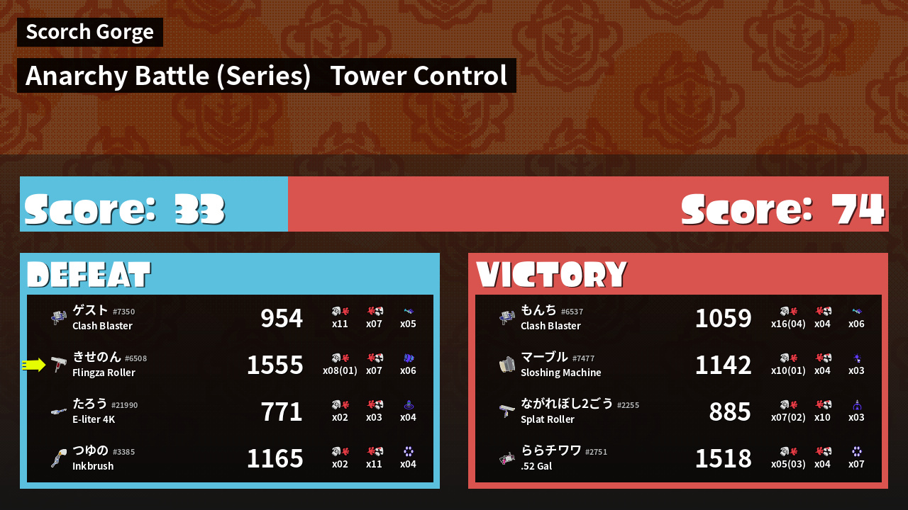 | Medals | #1 Turf Inker #1 Splat Assister #1 Tenta Missiles User | ||