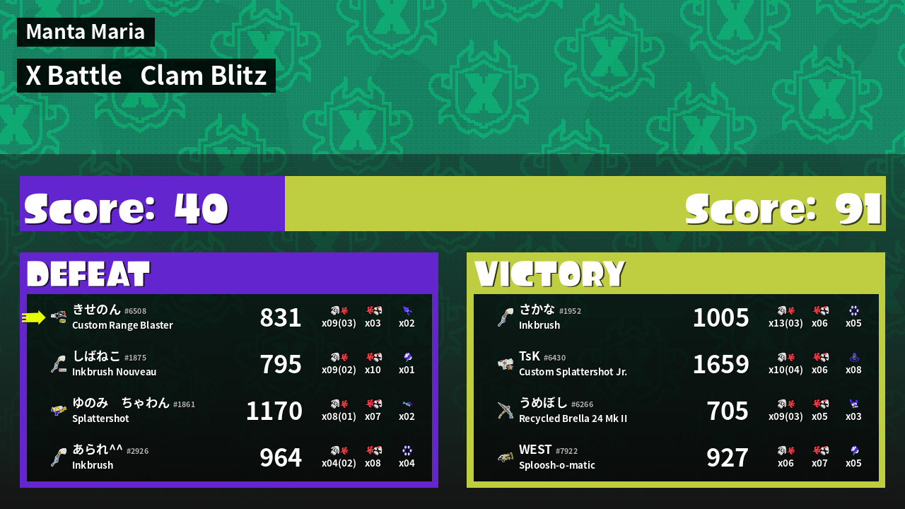 | Medals | #1 Overall Splatter #1 Clam Carrier #1 Splat Assister | ||