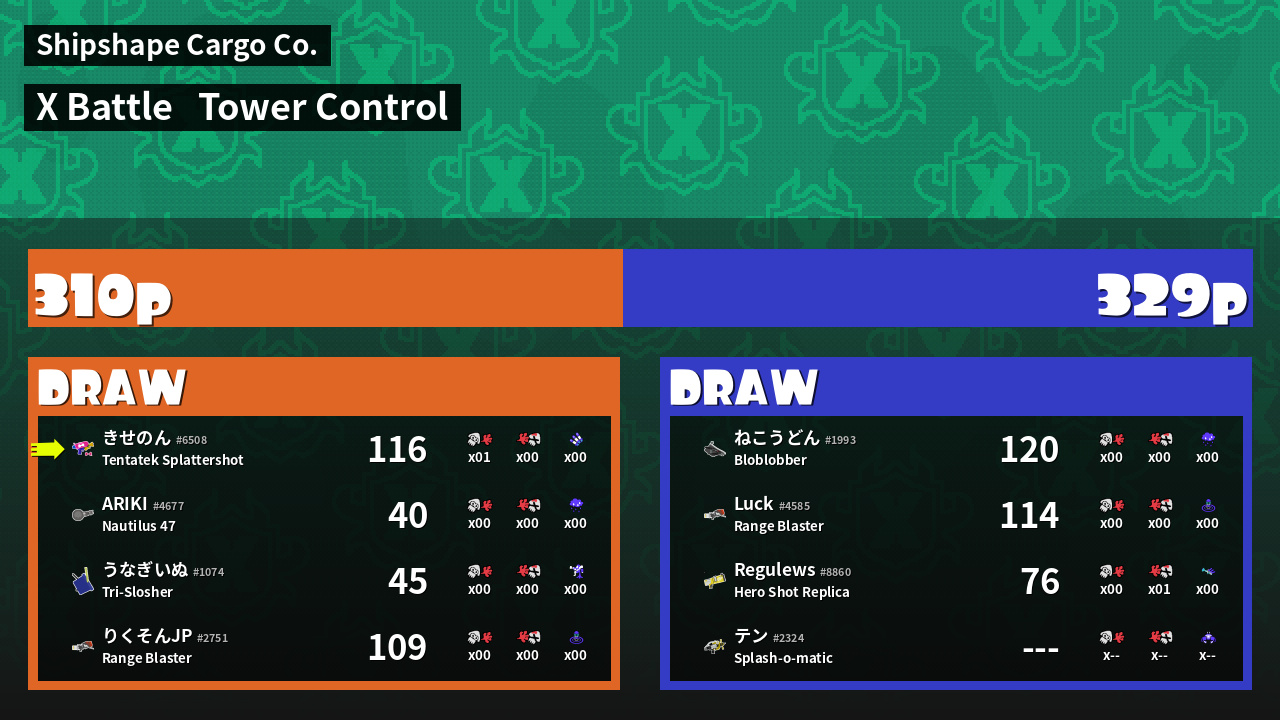 | Weapon | Tentatek Splattershot ( Splat Bomb / Triple Inkstrike) | ||