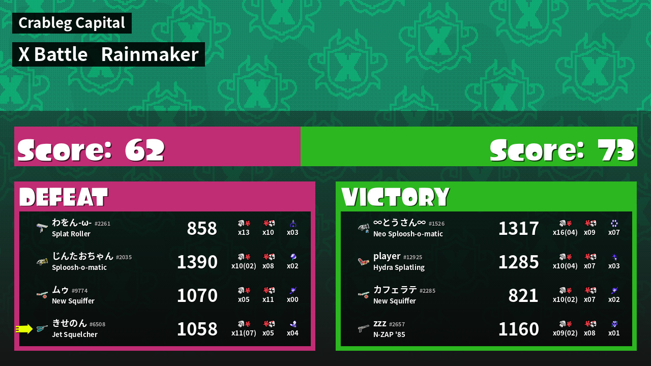 | Medals | #1 Splat Assister #1 Ink Consumer #1 Ink Vac User | ||