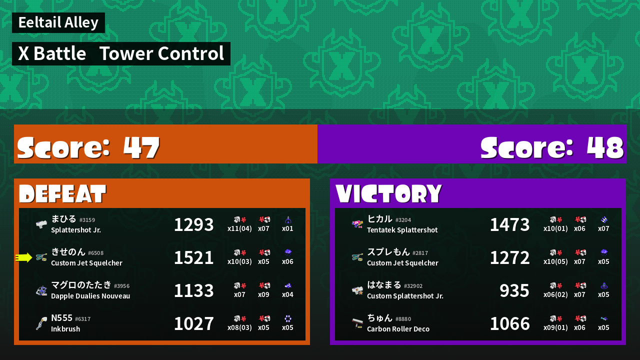 | Mode | Tower Control - X Battle | ||
