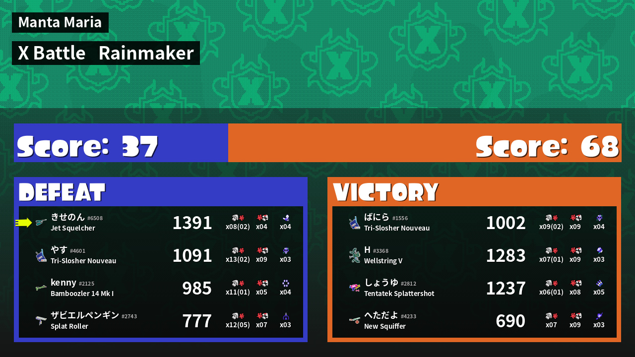 | Mode | Rainmaker - X Battle | ||