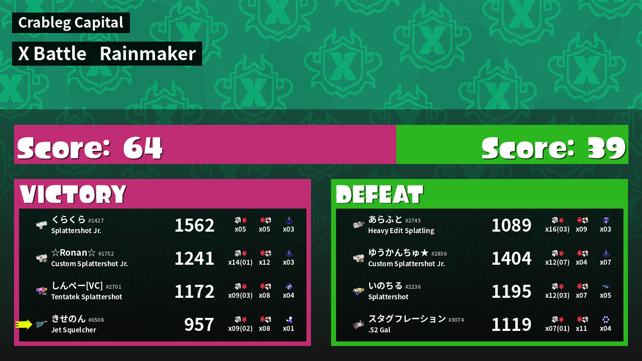 | Medals | #1 Score Booster #2 Overall Splatter #2 Enemy Splatter | ||