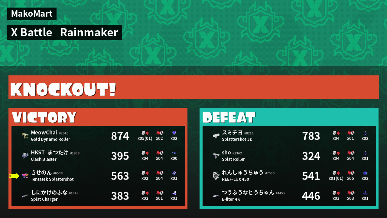 | Weapon | Tentatek Splattershot ( Splat Bomb / Triple Inkstrike) | ||