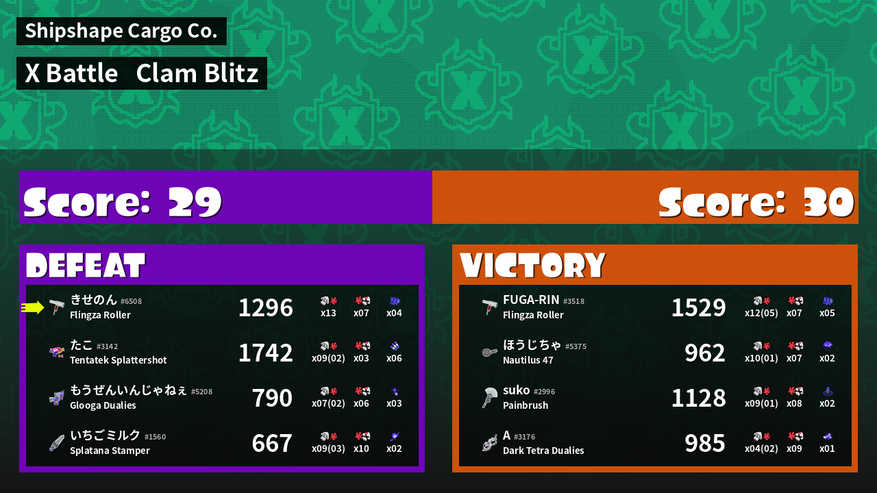 | Weapon | Flingza Roller ( Ink Mine / Tenta Missiles) | ||