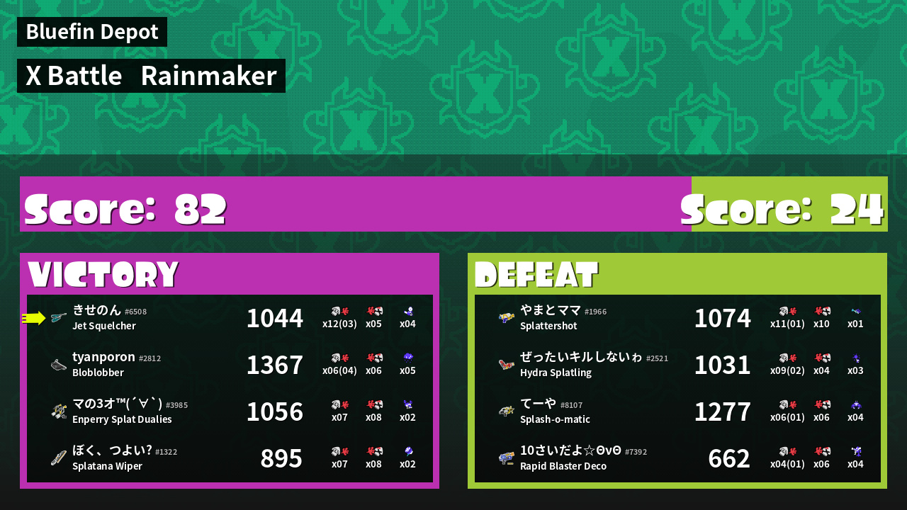 | Medals | #1 Overall Splatter #1 Popular Target #1 Enemy Splatter | ||