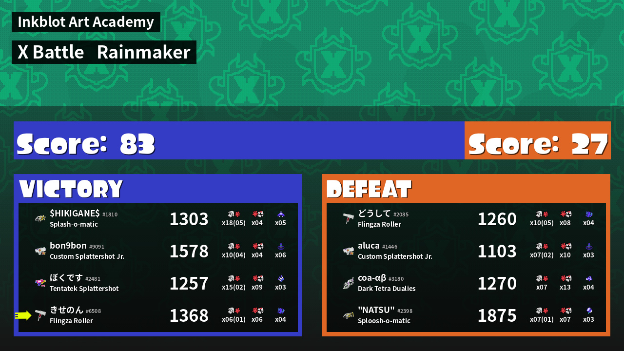 | Weapon | Flingza Roller ( Ink Mine / Tenta Missiles) | ||