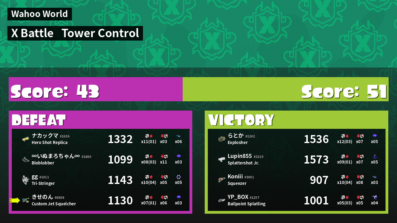 | Mode | Tower Control - X Battle | ||