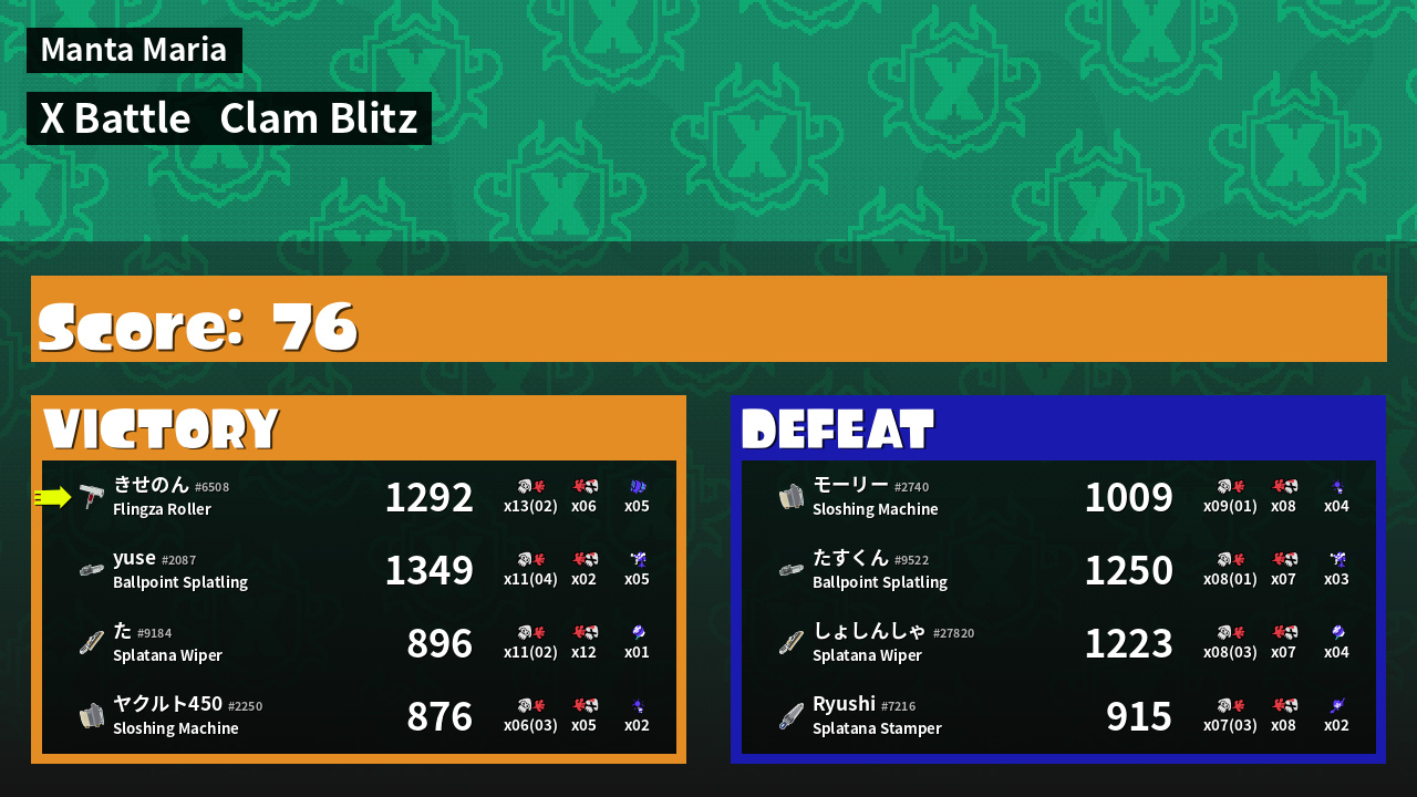 | Mode | Clam Blitz - X Battle | ||